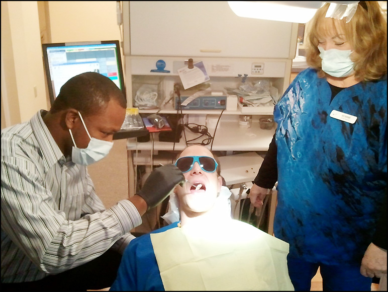 One of our patients had shared that at one time he considered becoming a dentist. So we thought it would be a good time for him to get a feel. Three photos.
